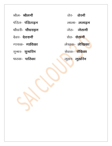 Hkhy& Hkhyuh 'ksj& 'ksjuh iafMr& iafMrkbu Ykkyk& yykbu pkS/kjh& pkS/kjkbu tsB& tsBkuh nsoj& nsojkuh lsB& lsBkuh xk;d& xkf;dk ys[kd& ysf[kdk lqukj& lqukfju lsod& lsfodk ikBd& ikfBdk yqgkj& yqgkfju