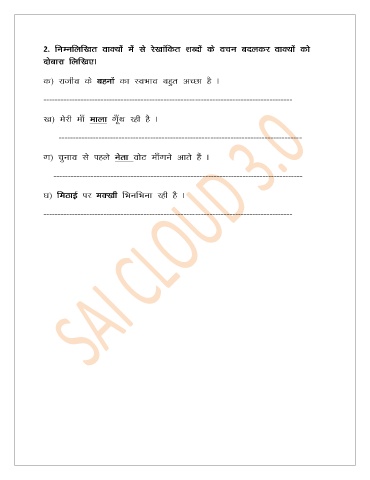 2. fuEufyf[kr okD;ksa esa ls js[kkafdr 'kCnksa ds opu cnydj okD;ksa dks