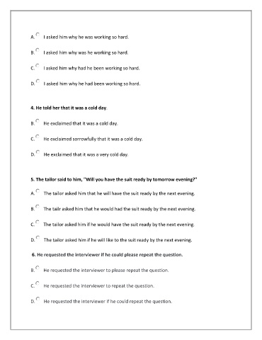 5. The tailor said to him, "Will you have the suit ready by tomorrow evening?"