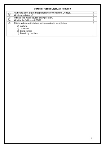 Q1. Name the layer of gas that protects us from harmful UV rays. 1