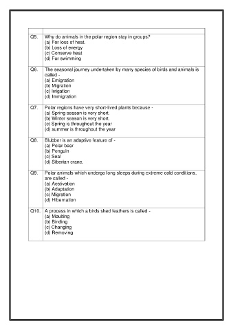 Q9. Polar animals which undergo long sleeps during extreme cold conditions,