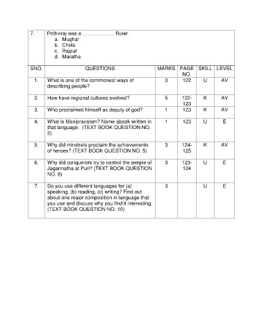 SNO. QUESTIONS MARKS PAGE SKILL LEVEL