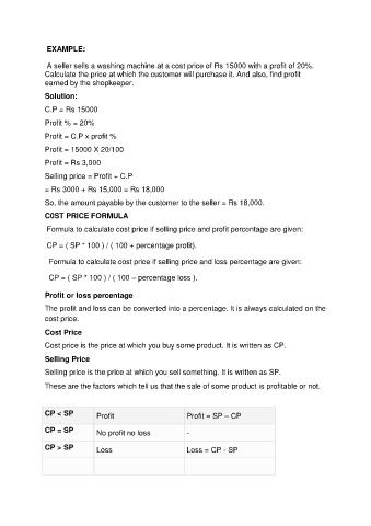A seller sells a washing machine at a cost price of Rs 15000 with a profit of 20%.