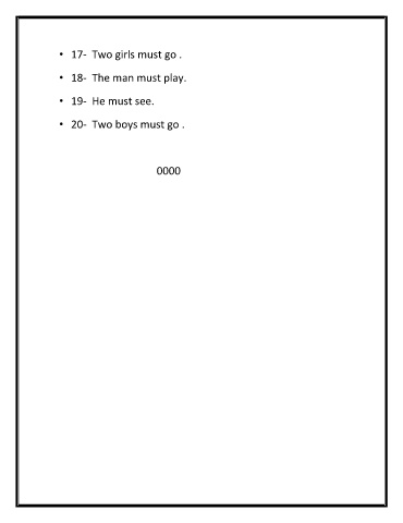 • 17- Two girls must go . • 18- The man must play. • 19- He must see. • 20- Two boys must go . 0000