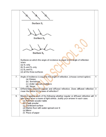 9. Mention against each of the following whether regular or diffused reflection will 3