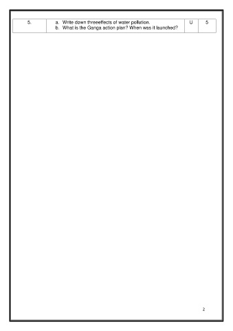 5. a. Write down threeeffects of water pollution. U 5 b. What is the Ganga action plan? When was it launched? 2