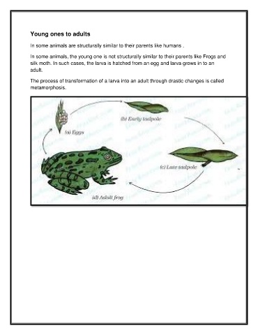 In some animals, the young one is not structurally similar to their parents like Frogs and