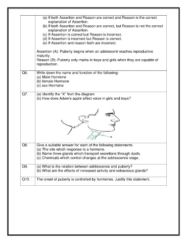 Assertion (A): Puberty begins when an adolescent reaches reproductive
