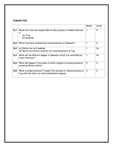 Q.1 Name the hormone responsible for the process of metamorphosis 1 E
