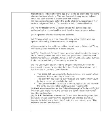 Franchise; All Indians above the age of 21 would be allowed to vote in the