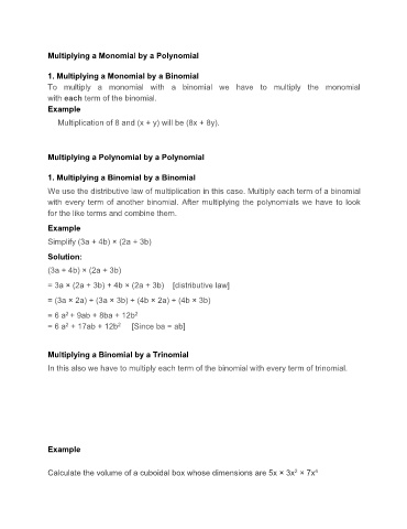 In this also we have to multiply each term of the binomial with every term of trinomial.