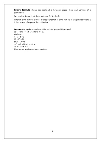 Euler’s formula shows the relationship between edges, faces and vertices of a
