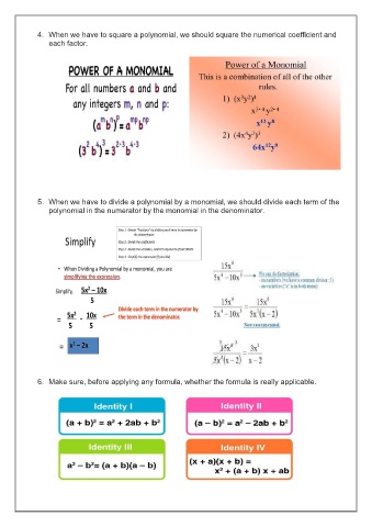5. When we have to divide a polynomial by a monomial, we should divide each term of the
