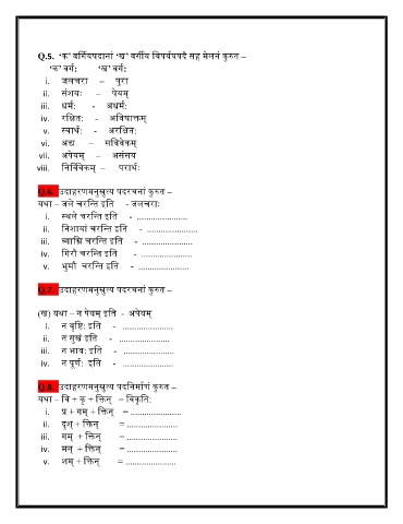 Q.5. ‘क’ व गयपदानां ‘ख’ वग य िवपय यपदै सह मेलनं क त –