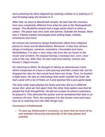 To sum up, Kathmandu‟s summary, we learn that we must all try