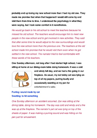 was up at the fireplace. The narrator’s pet cat was lying on top of the