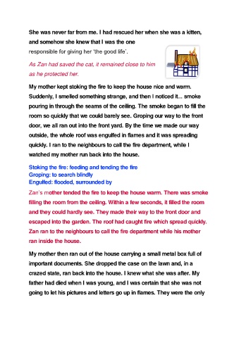 Zan‟s mother tended the fire to keep the house warm. There was smoke