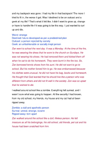 Zan went to school the next day. It was a Monday. At the time of the fire,