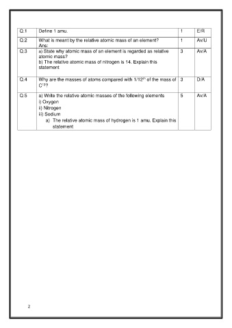 Q.2 What is meant by the relative atomic mass of an element? 1 Av/U
