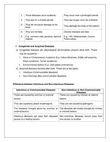 1. These diseases occur suddenly. They occur over a prolonged period.