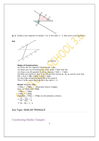 Q. 2 Divide a line segment of length 7 cm in the ratio 2 : 4. Also prove your assertion.