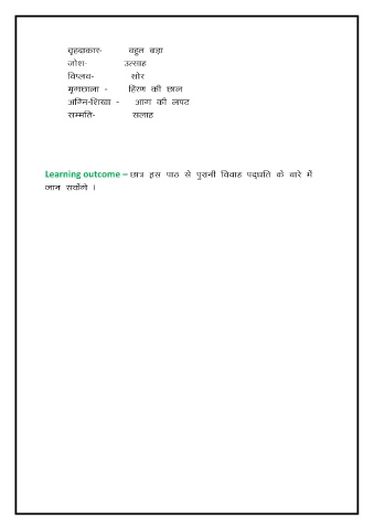 o`gnkdkj& cgqr cM+k tks’k& mRlkg foIyo& ‘kksj e`xNkyk & fgj.k dh Nky vfXu&f’k[kk & vkx dh yiV lEefr& lykg q Learning outcome – Nk= bl ikB ls ijkuh fookg in~/kfr ds ckjs esa a tku ldsxs A