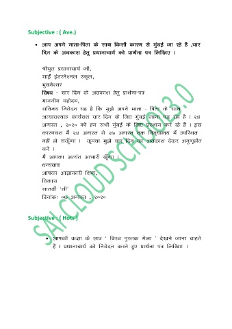 fo”k; & pkj fnu ds vodk’k gsrq izkFkZuk&i=