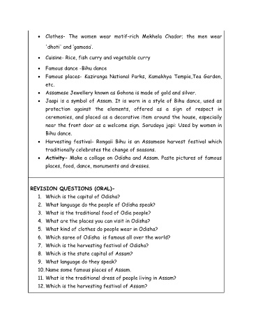 Activity- Make a collage on Odisha and Assam. Paste pictures of famous