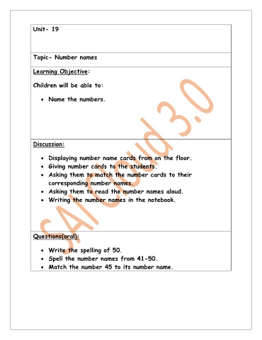 • Displaying number name cards from on the floor.