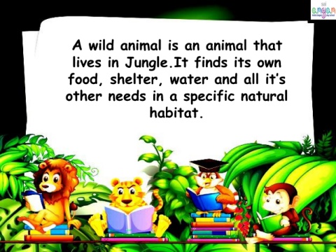 A wild animal is an animal that lives in Jungle.It finds its own food, shelter, water and all it’s other needs in a specific natural habitat.