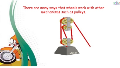 There are many ways that wheels work with other mechanisms such as pulleys.