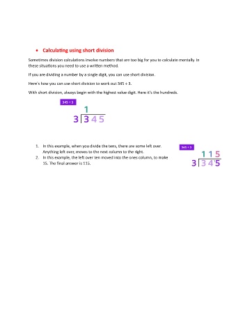 • Calculating using short division