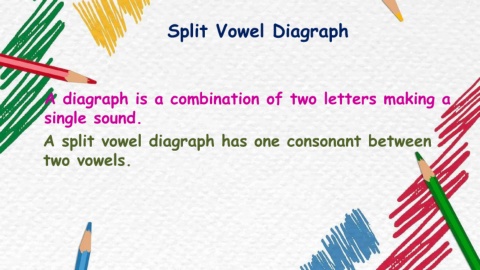 Split Vowel Diagraph A diagraph is a combination of two letters making a single sound. A split vowel diagraph has one consonant between two vowels.