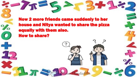 Now 2 more friends came suddenly to her house and Nitya wanted to share the pizza equally with them also. How to share?