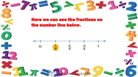 Here we can see the fractions on the number line below.