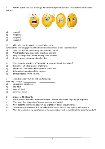 ii Pick the option that lists the image which correctly corresponds to the speaker’s mood in the