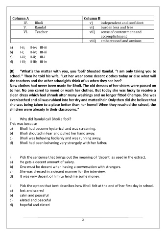 ii Pick the sentence that brings out the meaning of ‘decent’ as used in the extract.