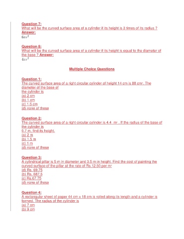 The curved surface area of a right circular cylinder of height 14 cm is 88 cm . The