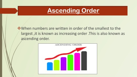 Ascending Order ❖When numbers are written in order of the smallest to the largest ,it is known as increasing order .This is also known as ascending order.