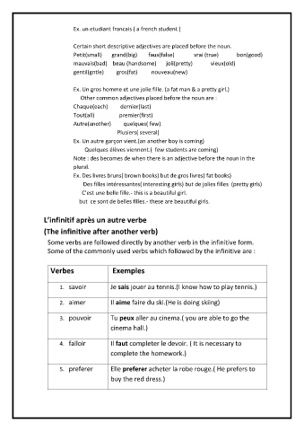 Petit(small) grand(big) faux(false) vrai (true) bon(good)