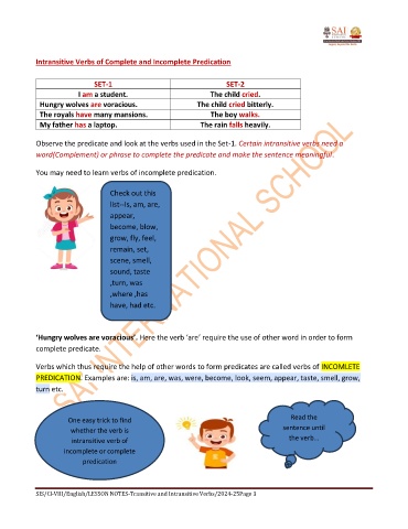 SIS/Cl-VIII/English/LESSON NOTES-Transitive and Intransitive Verbs/2024-25Page 3