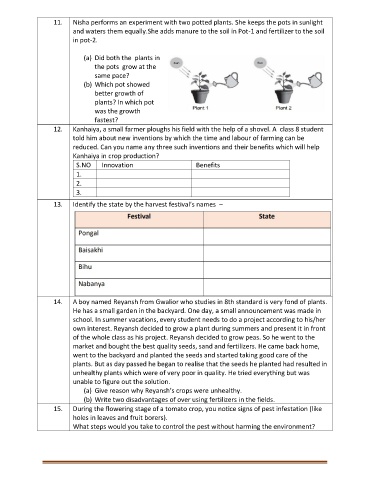 14. A boy named Reyansh from Gwalior who studies in 8th standard is very fond of plants.