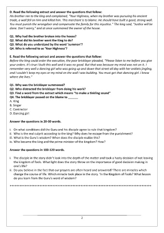 change the course of life. Which miracle took place in the story. ‘In the Kingdom of Fools? What lesson