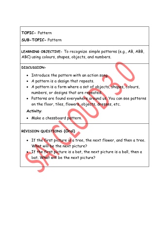 LEARNING OBJECTIVE- To recognize simple patterns (e.g., AB, ABB,