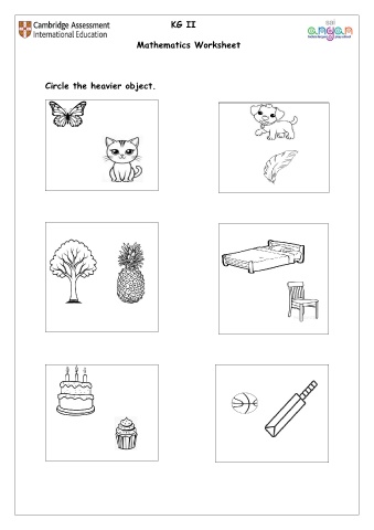 KG II Mathematics Worksheet Circle the heavier object.