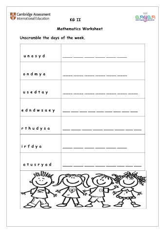 Unscramble the days of the week.