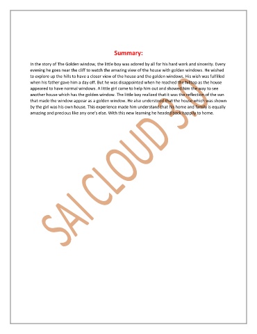 In the story of The Golden window, the little boy was adored by all for his hard work and sincerity. Every