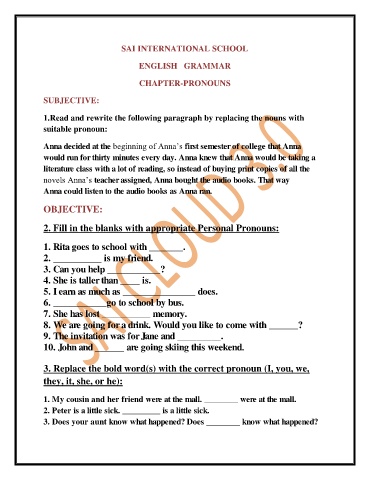 3. Replace the bold word(s) with the correct pronoun (I, you, we,