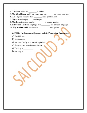 4. Fill in the blanks with appropriate Possessive Pronouns: