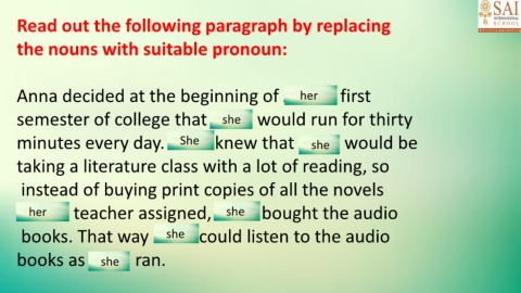 the nouns with suitable pronoun: